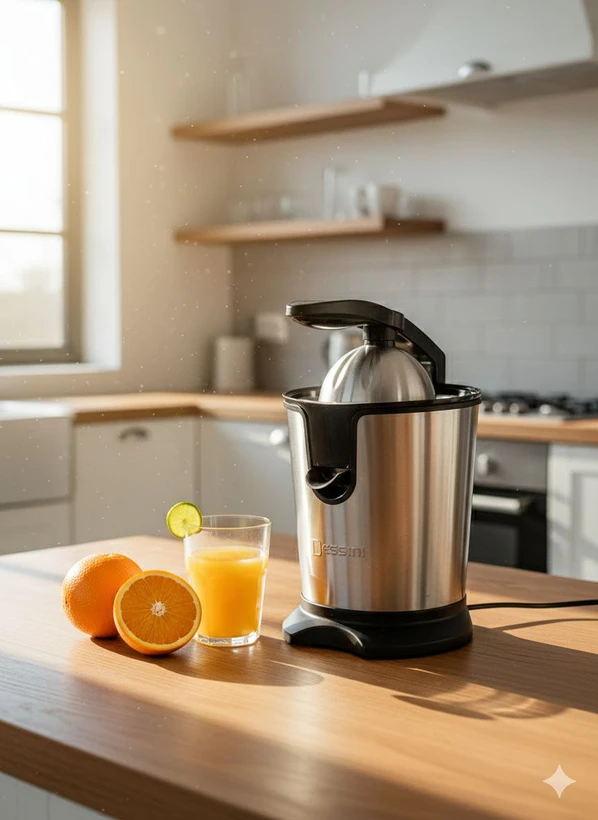با آبمرکباتگیر برقی دسینی (Dessini)، لذت نوشیدن یک لیوان آبمیوه طبیعی و سرشار از ویتامین C را بدون کوچکترین زحمت تجربه کنید. این دستگاه که نمادی از قدرت و کارایی در آشپزخانه است، برای استخراج کامل آب مرکبات با حفظ خواص تغذیهای طراحی شده است.